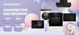 При покупке комплекта из 2-х приборов крупной бытовой техники ТМ Maunfeld вы получаете скидку 30% на второй прибор с наиболее низкой стоимостью в комплекте.